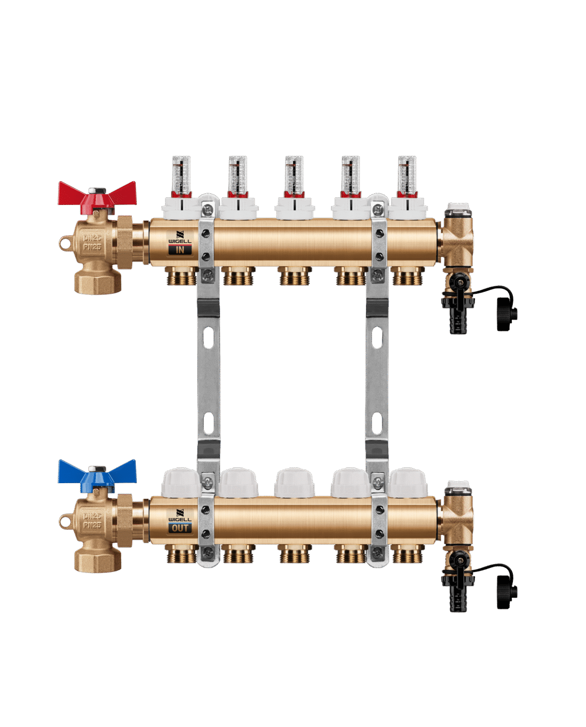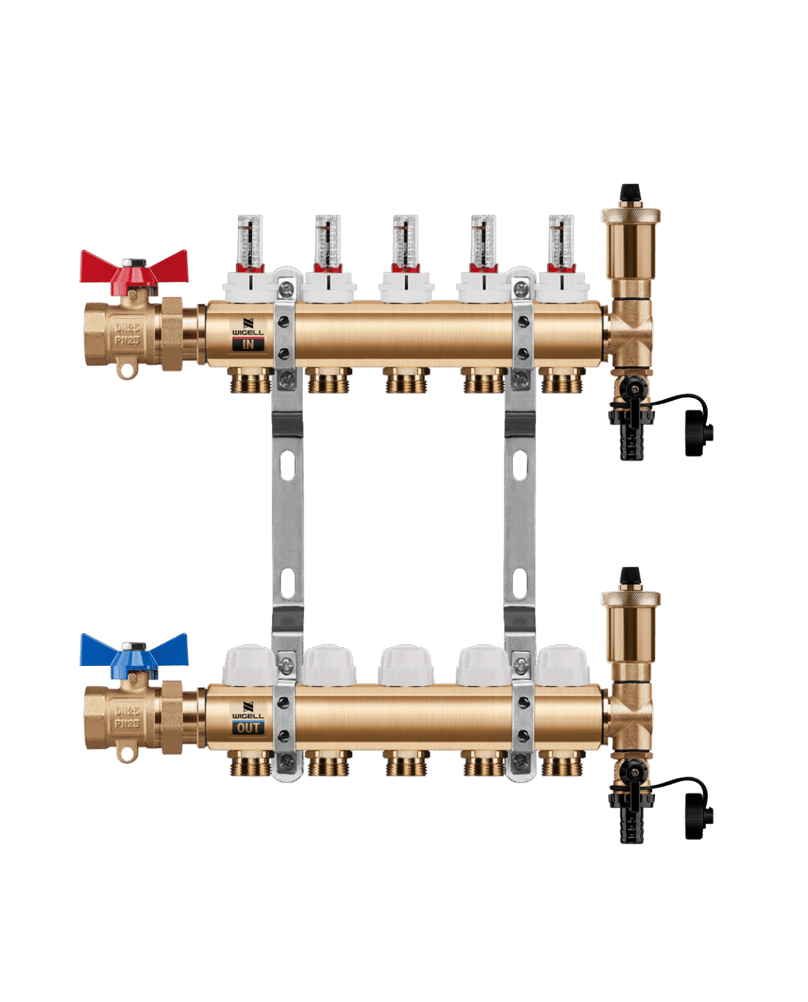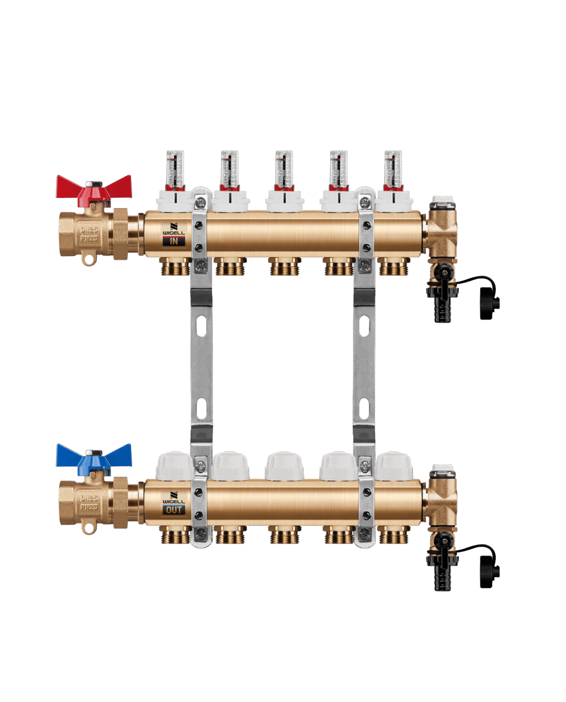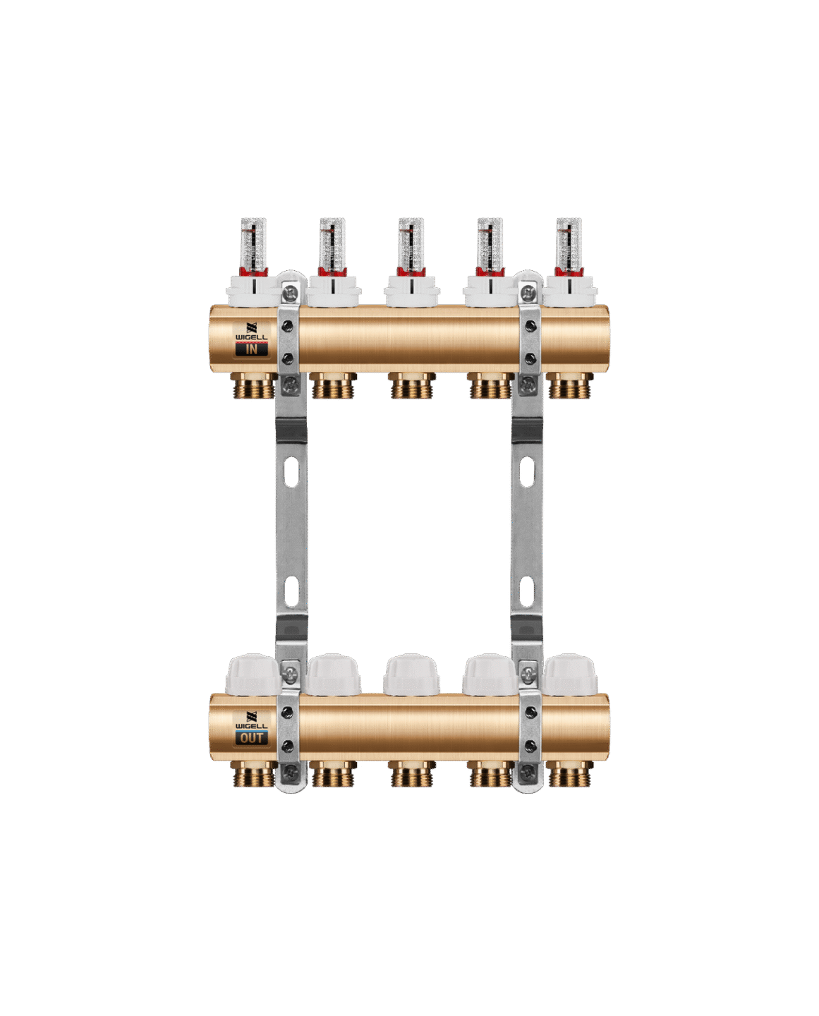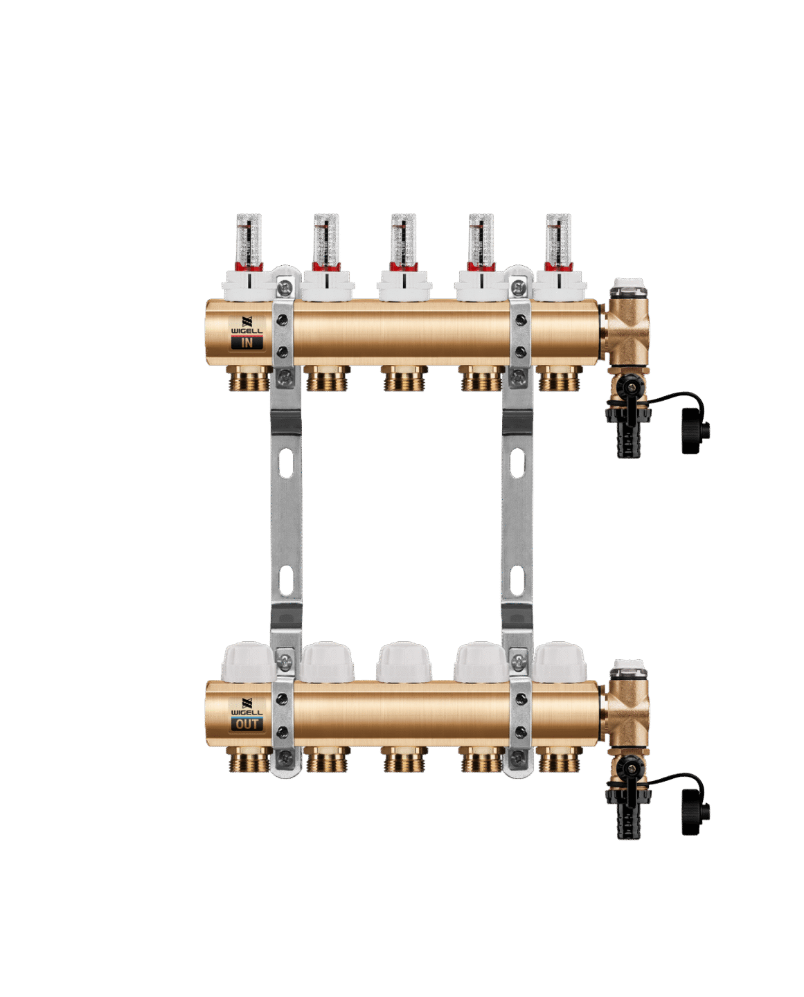 Раздјелници за зрачење грејања, укључујући и подно грејање, производних линија ВиРо и Wироx произведени од месинга CW617N у опсегу од 2 до 18 кола.